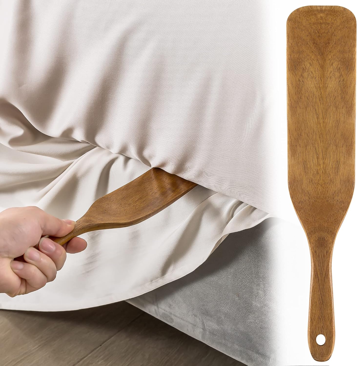 - 【Durable & Smooth】Crafted from premium teak wood, our bed making tool is strong, durable, and won't easily break. The smooth surface ensures that it won't scratch your sheets or damage your mattress