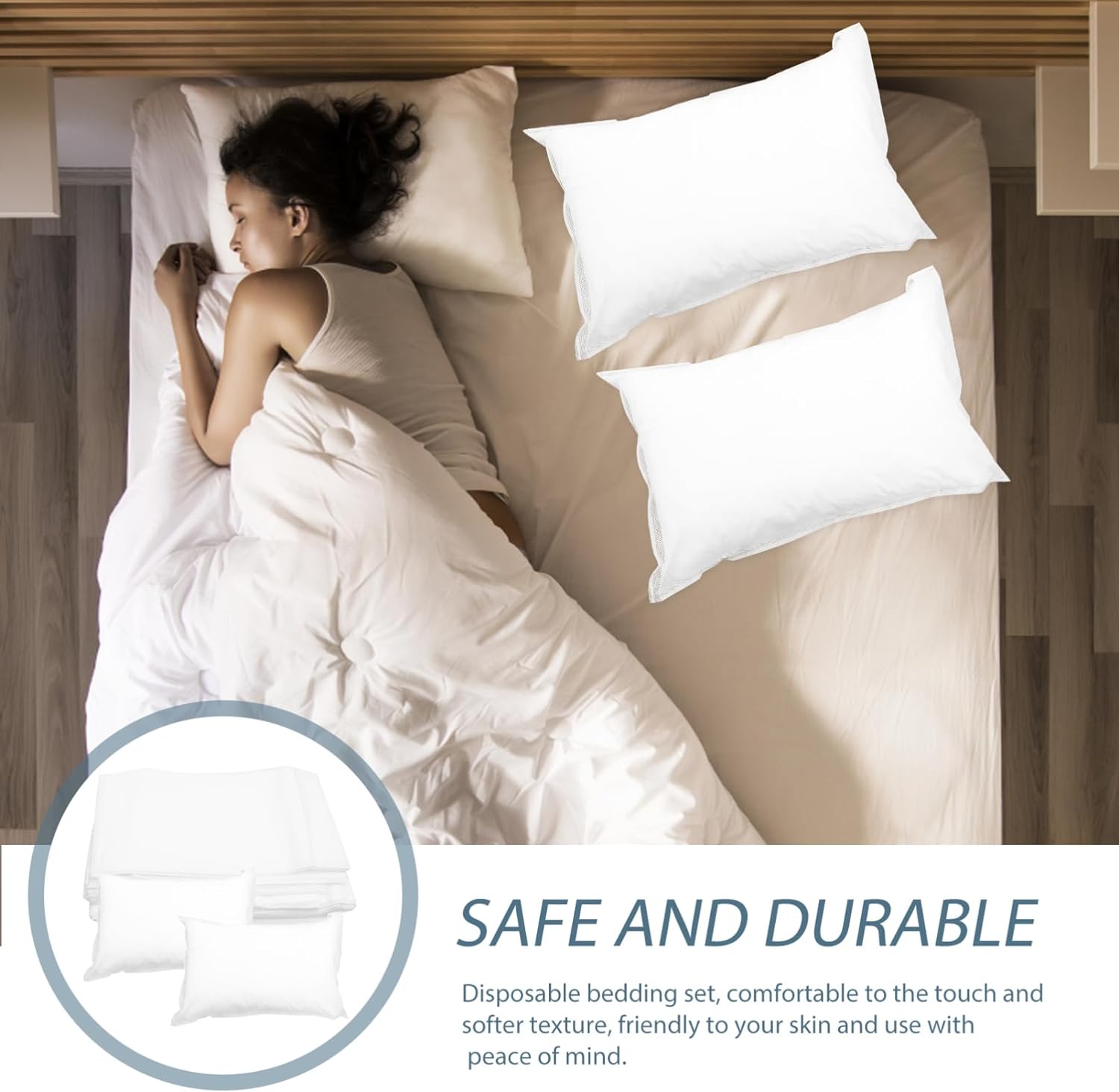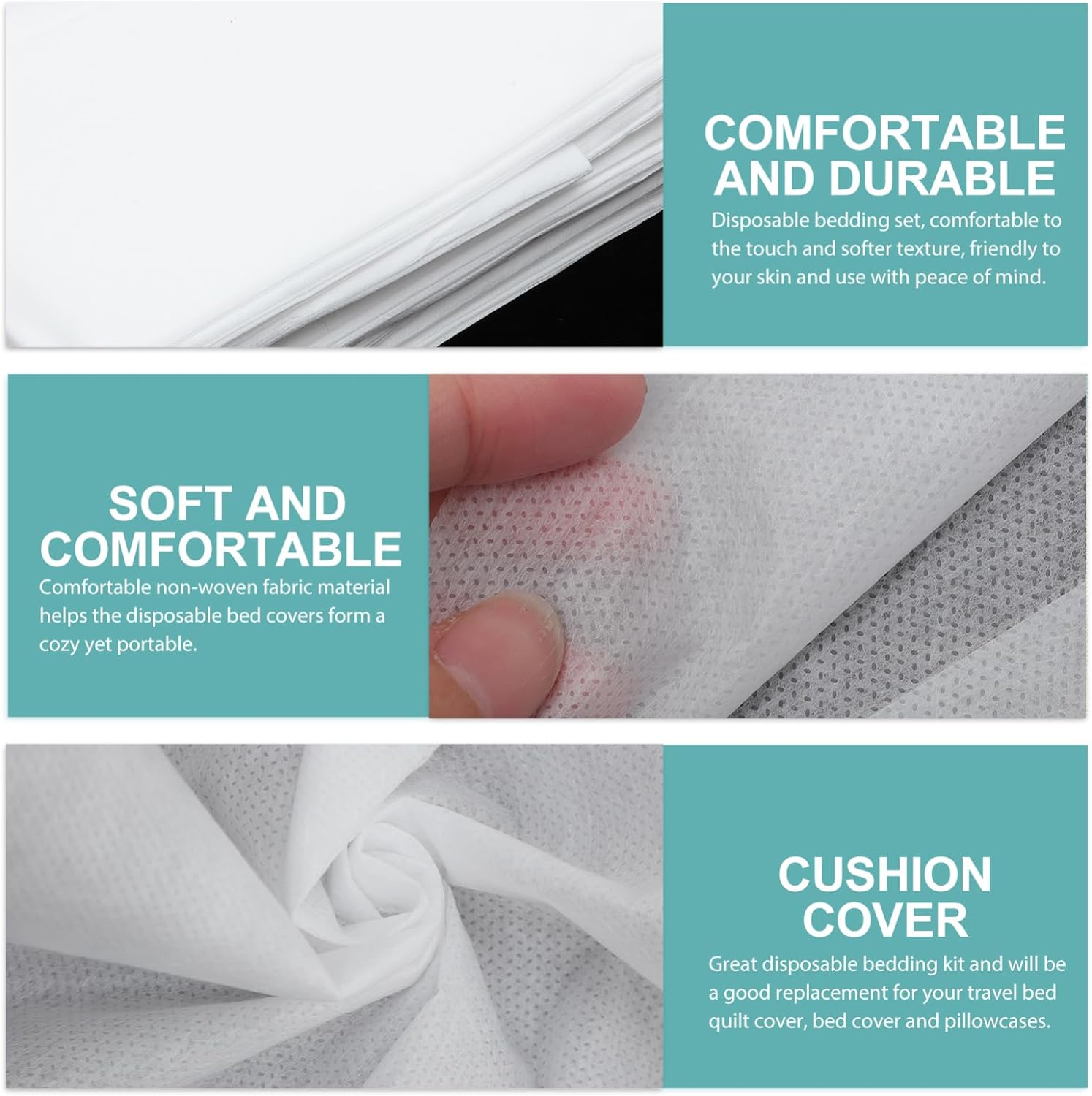 - Disposable bedding for travel-- disposable bedding set, comfortable to the touch and softer texture, friendly to your skin and use with peace of mind.